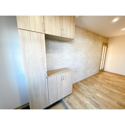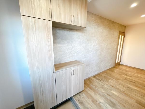 【リフォーム中 玄関内観】約2帖の玄関土間に下駄箱収納がつい