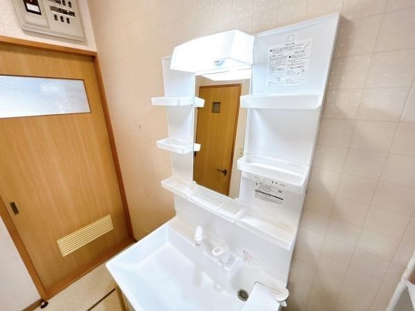 【リフォーム中 洗面所】洗面化粧台は新品交換します。ノズルの