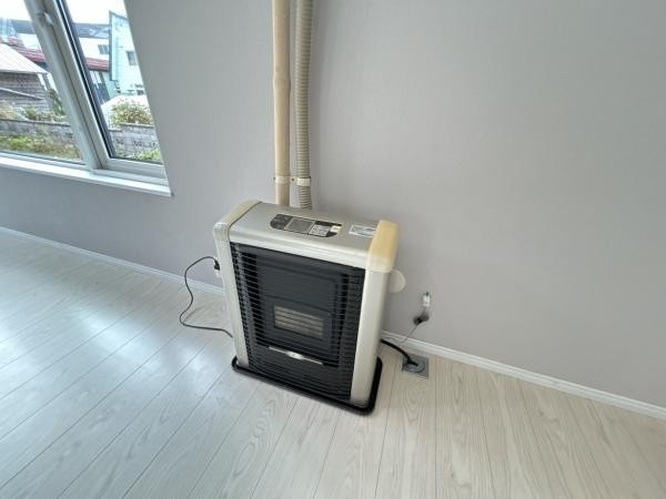 【現況 ストーブ】リビングにFFストーブが設置されております