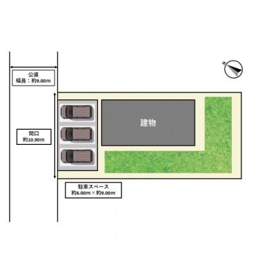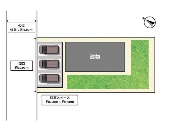 【区画図】駐車並列2~3台可能です。庭スペースもございます。