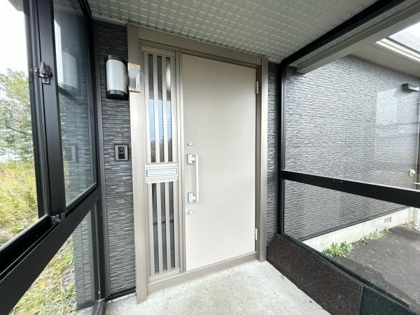 【現況 玄関】断熱ドアが入っております。風除室がある為冬場も