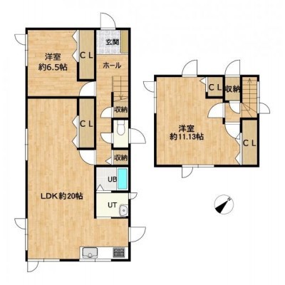 【現況 間取図】1階6.5帖洋室1部屋、2階11.13帖洋室