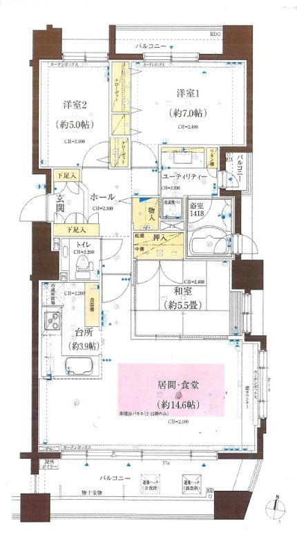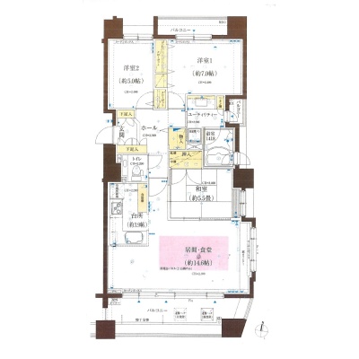3LDK(81.21m²)└ LD14.6帖 K3.9帖 和室5.5帖 洋室5帖 洋室7帖