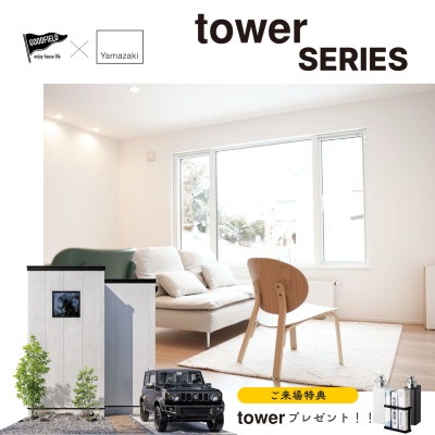 ここに注目!次代の日常を創造する Make next Standards. ■家具ではなく「生活雑貨」を詰め込んだ新発想のコラボハウス ■業界の常識を覆し、暮らしに本当の価値をプラスする住まい ■機能美あふれるtowerシリーズの収納アイテムを標準装備 ■GOODFIELDの確かな技術と山崎実業のデザイン哲学の融合 ■快適な生活動線と使い勝手を追求したスマートな間取り設計 ■安心のZEH水準新築住宅+充実の4大保証付き ■家具もセットでご提案。