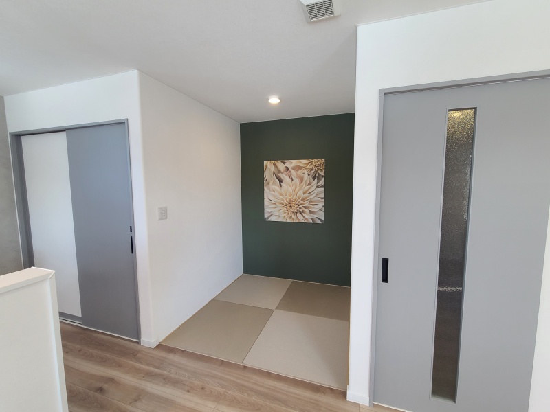 畳の間には調湿・消臭効果が期待できる「エコカラット+」をアクセントに。マグネット式なのでお好みで張り替え可能です