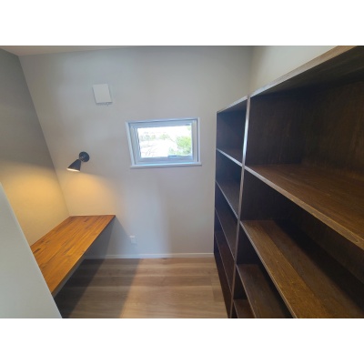造り付けのデスクと書棚がある書斎