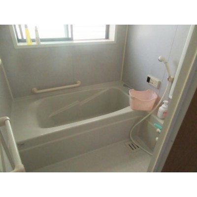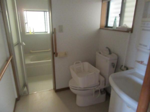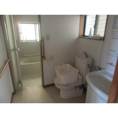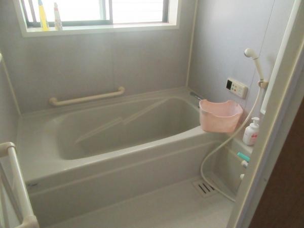 車椅子でもゆっくり入れるタイプです。手洗いもついていて衛生的