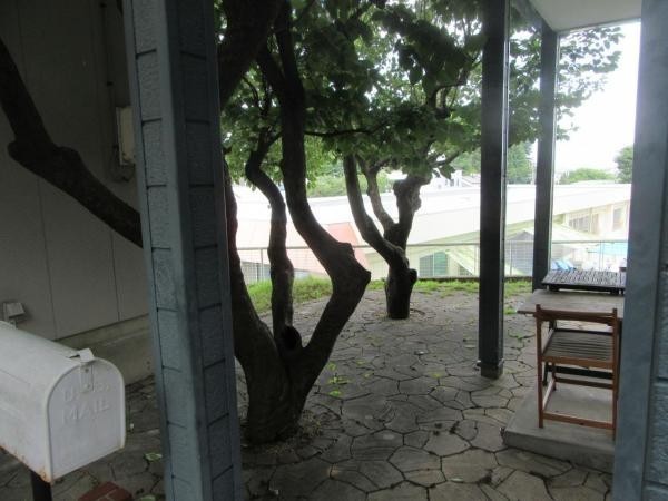 庭にはこだわりの木が2本。土で足が汚れない様に配慮しいてます