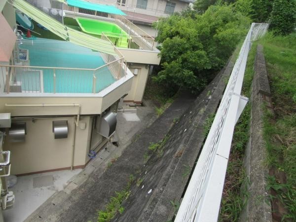 西側段差部分はしっかりとした擁壁工事がしてあります。