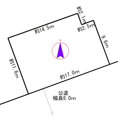 建物の階建 地上2階建 主要採光面 構造 木造 接道状況 一方 - 南西側幅8.00mの公道に17.00m接道
