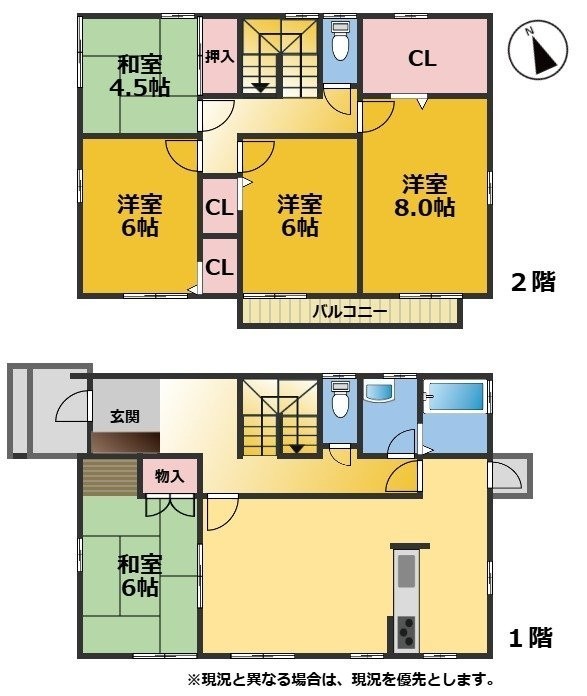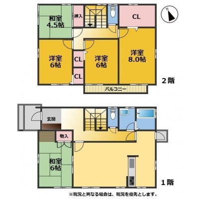 建物の階建 地上2階建 構造 軽量鉄骨造 間取り 5LDKLDK17.0帖 和室6.0帖 洋室6.0帖×2 洋室8.0帖 和室4.5帖 駐車場 あり接道状況 一方 - 西側幅6.00mの公道に11.00m接道