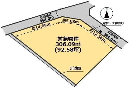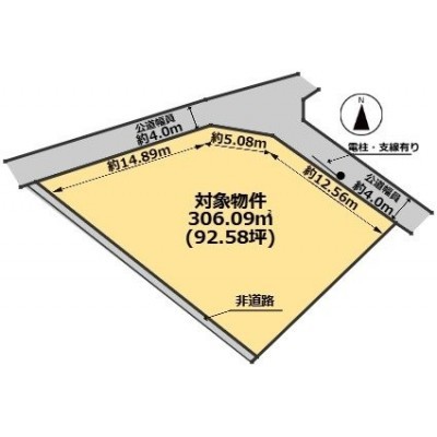 総区画数-/- 接道状況 二方(除角地) - 二方(除角地) 北西側14.8m 公道 接道幅員4.0m/北東側12.5m 公道 接道幅員4.0m
