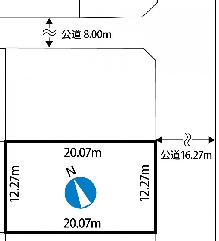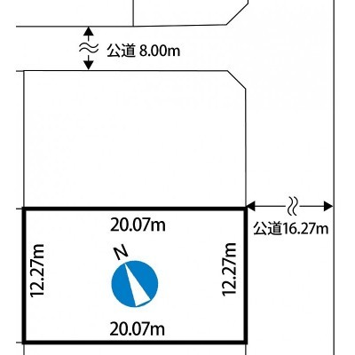 総区画数-/- 接道状況 一方 - 東側幅16.27mの公道に12.27m接道