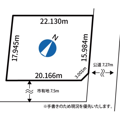 総区画数-/- 接道状況 一方 - 東側幅7.27mの公道に15.98m接道
