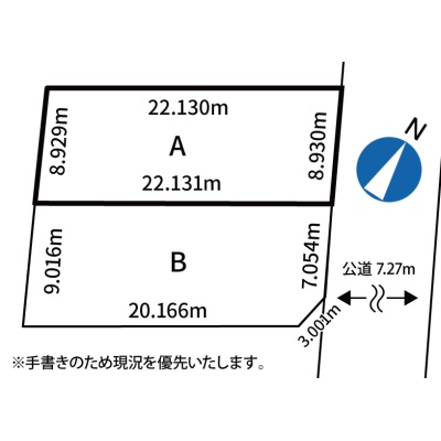 総区画数-/- 接道状況 一方 - 東側幅7.27mの公道に8.93m接道