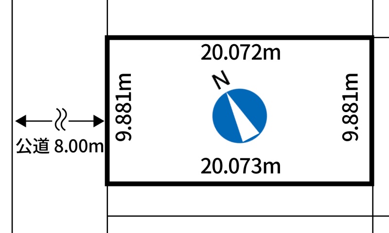 総区画数-/- 接道状況 一方 - 西側幅8.00mの公道に9.88m接道 位置指定:無