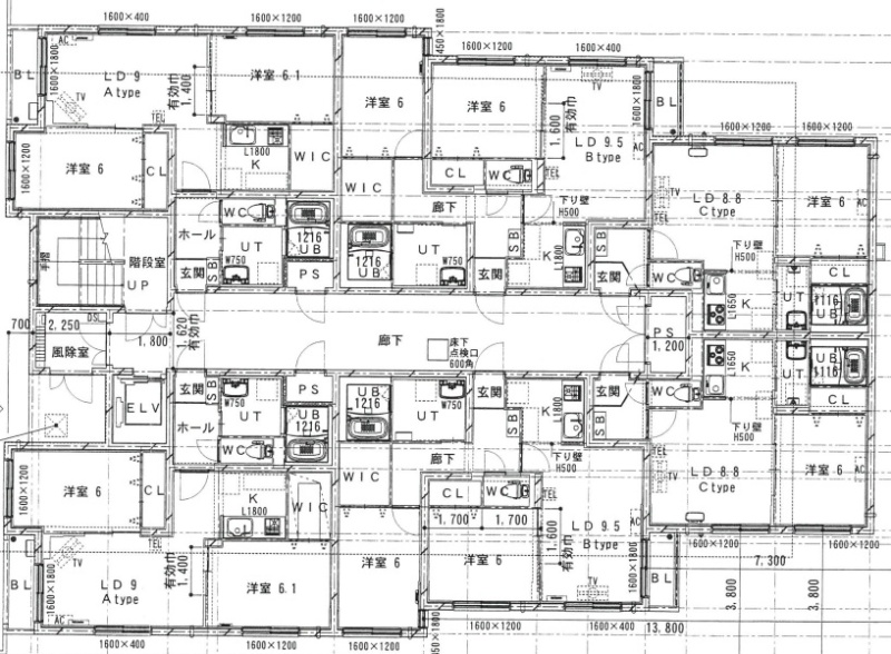 | 面積 | 建物:1878.95m² (568.38坪)/ 土地:813.15m² (245.97坪)(公簿) 専有:最小36m² (10.89坪)~最大63m² (19.05坪) |