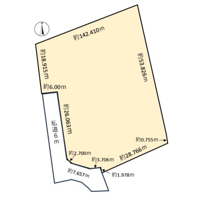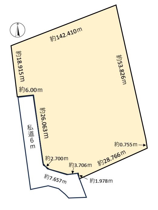 総区画数-/- 接道状況 二方(除角地) - 西側幅6.00mの私道に42.10m接道