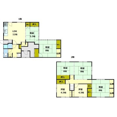 | 間取り | 7DK以上LDK11帖 和室5.5帖 和室8帖 和室6帖 和室8帖 洋室4.5帖 洋室4.5帖 和室8帖 |