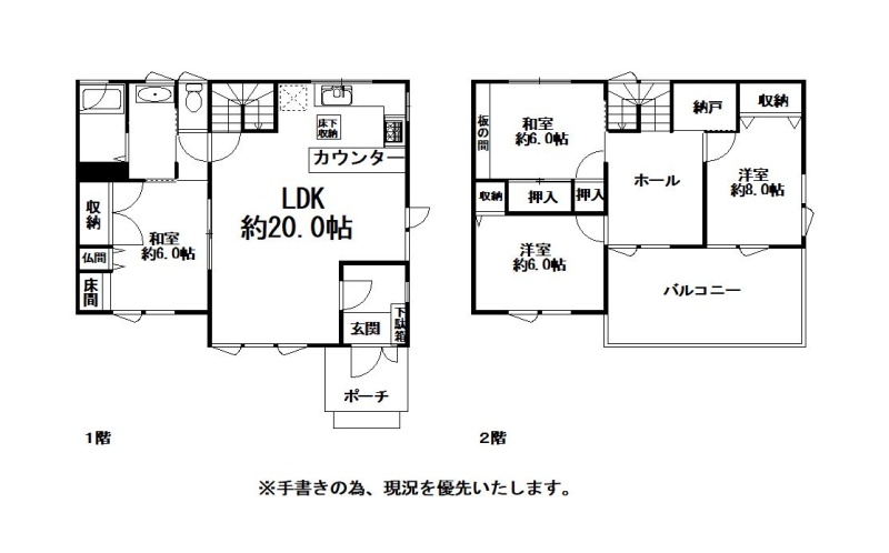| 間取り | 4LDKLDK20帖 和室6帖 和室6帖 洋室6帖 洋室8帖 |