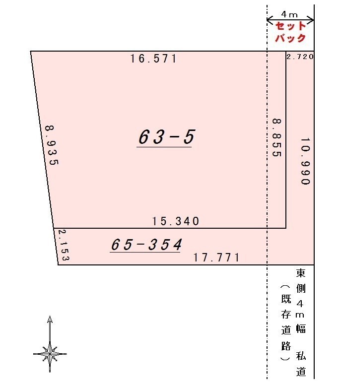 総区画数-/- 接道状況 一方 - 東側幅4.00mの私道に接道