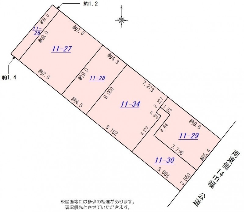 総区画数-/- 接道状況 一方 - 南東側幅14.00mの公道に8.90m接道