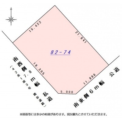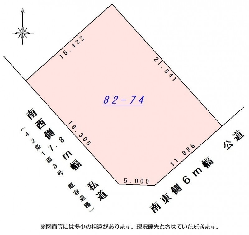 - 南西側幅7.80mの私道に18.30m接道