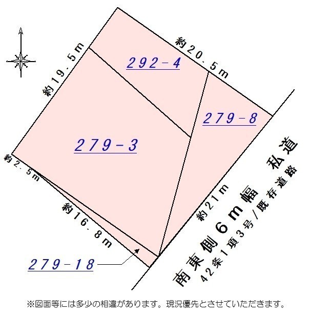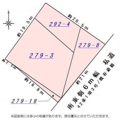 総区画数-/- 接道状況 一方 - 南東側幅6.00mの私道に21.00m接道