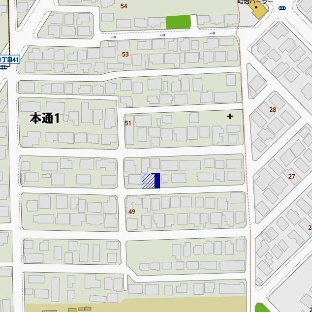 備考 ※家屋番号:本通1丁目151番34の4 ※前面道路に都市ガス管あるが未接続、現況はLPガス。 学区色がついているアイコンをクリックすると、本物件までの道順を見ることができます。