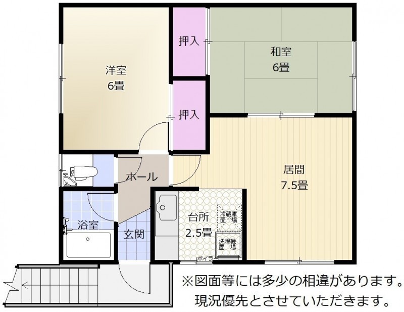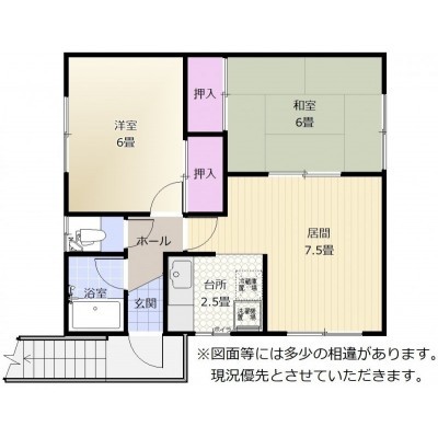 | 間取り | 2DK2階:洋室6帖 和室6帖 DK7.5帖 |