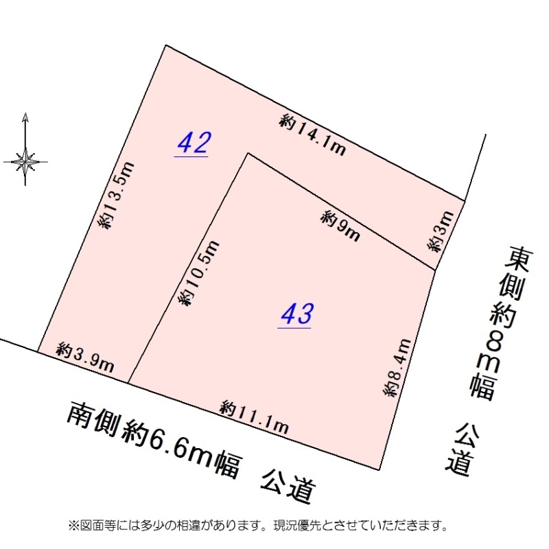 総区画数-/- 接道状況 角地 - 東側幅8.00mの公道に11.40m接道