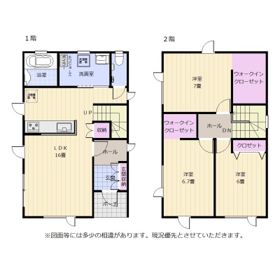 | 間取り | 3LDK1階:LDK16帖 / 2階:洋室7帖 洋室6帖 洋室6.7帖 |