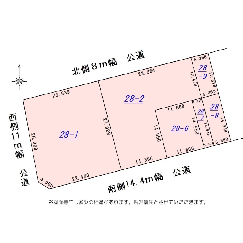 - 西側幅11.00mの公道に25.30m接道