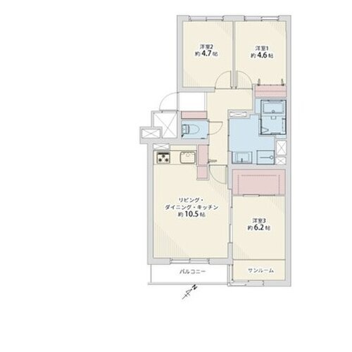 3LDK(64.55m²)└ LDK10.5帖 洋室6.2帖 洋室4.6帖 洋室4.7帖