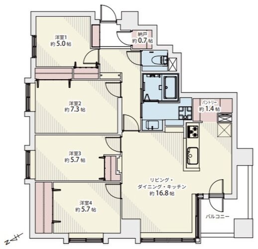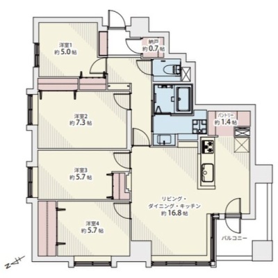 4LDK(91.14m²)└ LDK16.8帖 洋室5.7帖 洋室5.7帖 洋室7.3帖 洋室5帖