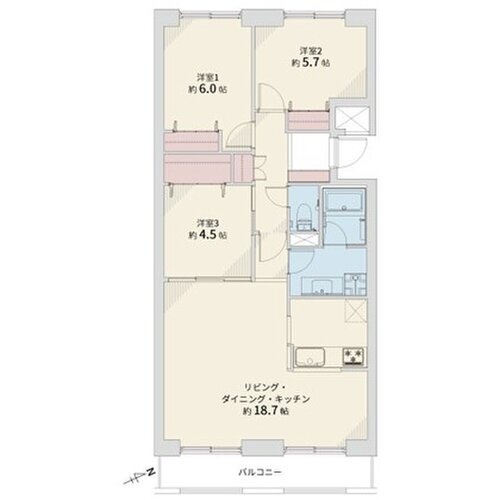 3LDK(74.33m²)└ LDK18.7帖 洋室4.5帖 洋室6帖 洋室5.7帖