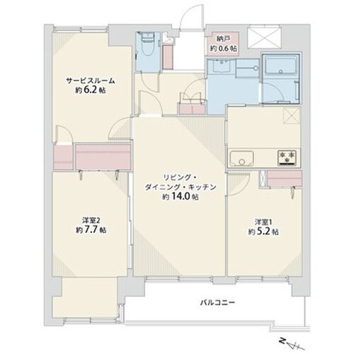 2SLDK(71.89m²)└ LDK14帖 洋室7.7帖 洋室5.2帖 S6.2帖