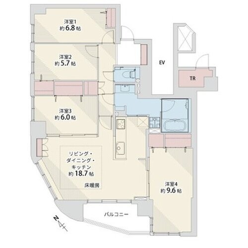 4LDK(103.72m²)└ LDK18.7帖 洋室9.6帖 洋室6帖 洋室5.7帖 洋室6.8帖