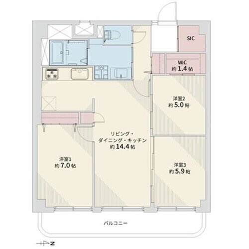 3LDK(70.85m²)└ LDK14.4帖 洋室7帖 洋室5.9帖 洋室5帖