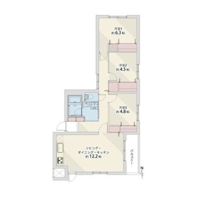 3LDK(71.77m²)└ LDK12.2帖 洋室4.8帖 洋室4.5帖 洋室6.3帖
