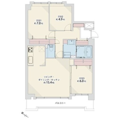 3LDK(75.4m²)└ LDK15.4帖 洋室6帖 洋室7帖 洋室4.9帖