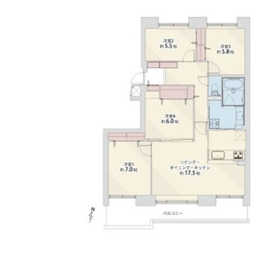 4LDK(92.91m²)└ LDK17.5帖 洋室7帖 洋室6帖 洋室5.8帖 洋室5.5帖