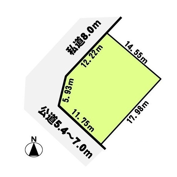 - 北西側幅8.00mの私道に12.22m接道