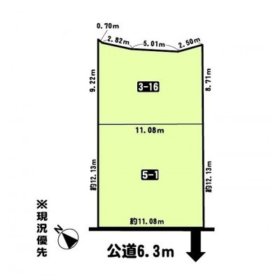 総区画数-/- 接道状況 一方 - 南西側幅6.30mの公道に11.08m接道