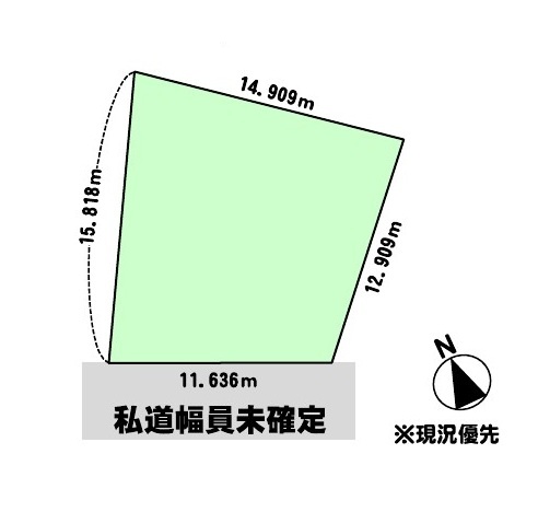 総区画数-/- 接道状況 一方 - 南西側の私道に11.63m接道