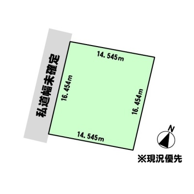 総区画数-/- 接道状況 一方 - 西側の私道に16.45m接道
