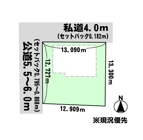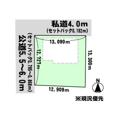 - 北側幅4.00mの私道に13.09m接道