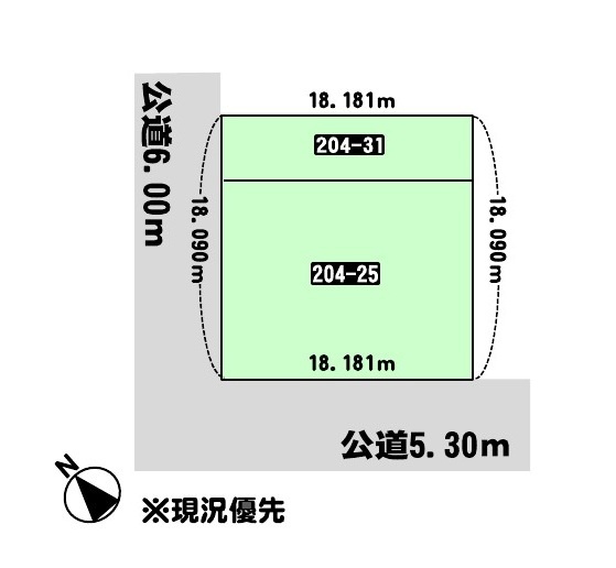 - 北西側幅6.00mの公道に18.09m接道