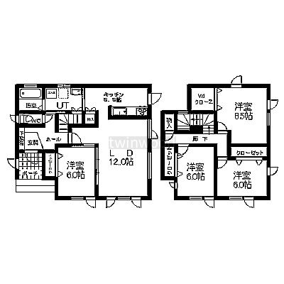 | 間取り | 4LDK1階:LDK17.5帖 洋室6帖 / 2階:洋室6帖 洋室6帖 洋室8.5帖 |