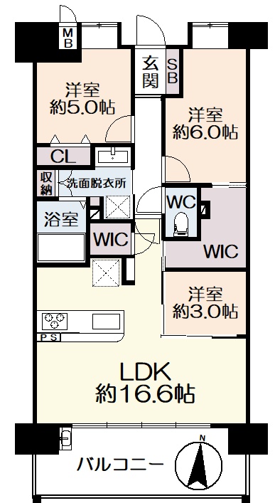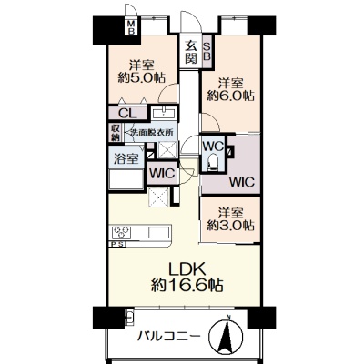 3LDK(71.9m²)└ 11階:LDK16.6帖 洋室6帖 洋室5帖 洋室3帖